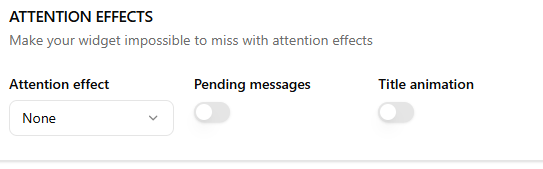 The Attention Effects section helps make your widget more noticeable to visitors by adding subtle visual cues and notifications. These settings are designed to increase engagement without interrupting the browsing experience.