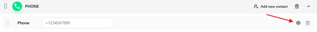 Each selected channel will create a configuration block where you can add and manage the contact information. For example the phone number field: