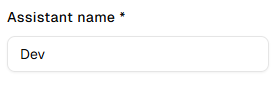 The assistant name will be used internally to identify the AI assistant across leads, the dashboard, and other assistant-related sections.