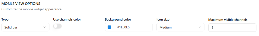 Channels Bar — Displays a compact horizontal bar at the bottom of the screen showing your available contact channels. Ideal for keeping the widget visible without taking up too much screen space.