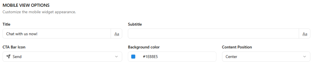 - Title — The main text displayed on the bar e.g. “Chat with us now!”